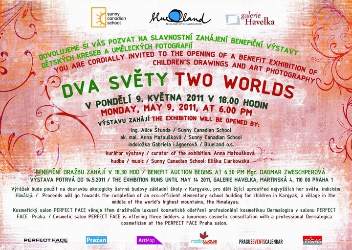Dětská kresba dominuje benefiční výstavě Dva světy v pražské Galerii Havelka. V Odpolední session výstavu představily indoložka a zakladatelka o.s. BlueLand Gabriela Lágnerová a zástupkyně Sunny Cannadian School Anna Matoušková.