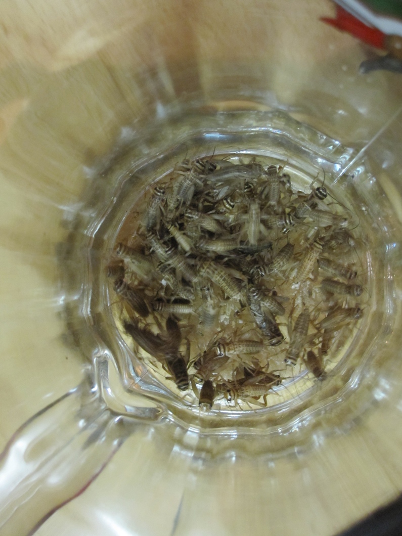A chvíle pravdy je tu. Smažení červi chutnají vlastně docela jako česnekové křupky. Jako dezert si dávám ještě cvrčky v karamelu. A vzhledem k obsahu bílkovin je to zákusek sice malý, ale vydatný: „Konkrétně cvrčkové a sarančata mají proteinů úplně nejvíc ze všeho masa, pokud je tedy počítáme do kategorie masa. Je to až 75 % v sušině, což nemá zdaleka hovězí ani jiné obratlovčí maso. U červů je to kolem padesáti procent, ale i to je hodně slušné,“ doplňuje Erika nutriční hodnoty. Přes lehkou počáteční nedůvěru si nakonec odnáším pár červů a cvrčků v krabičce domů, na potom.