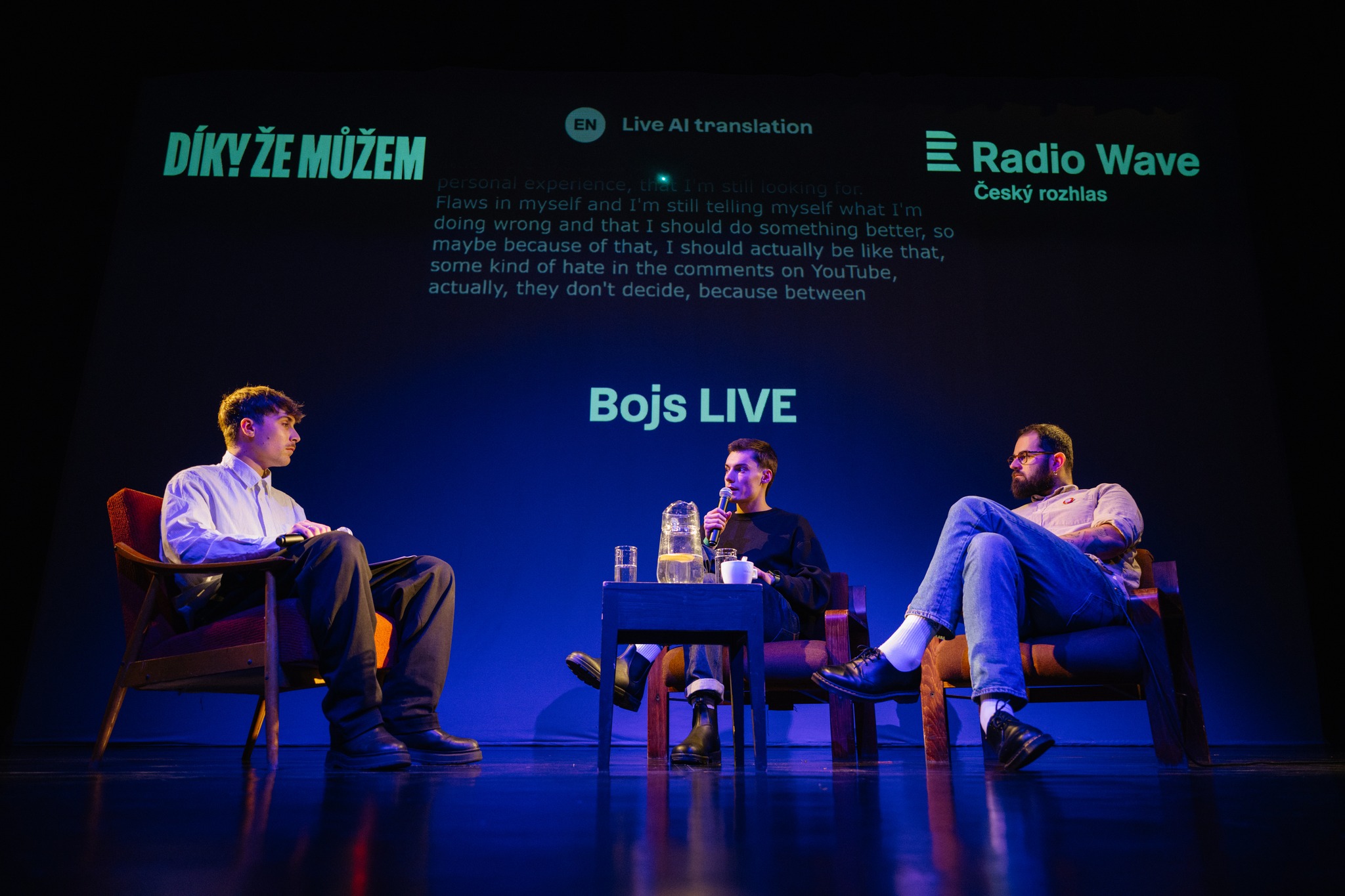 Zaplněný sál divadla Image na Národní třídě sledoval diskuzi tří novinářů. František Trojan z Respektu promluvil třeba o tom, jaký je rozdíl mezi mladými novináři a starší generací. V Bojs byl totiž nedávno jeho vedoucí, šéfredaktor Respektu Erik Tabery, a přiznal, že moc neumí sdílet své pocity a mladším to trochu závidí.