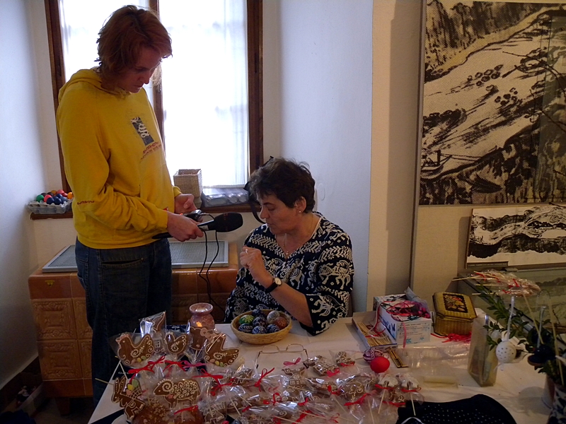 S mikrofonem na velikonoční jarmark