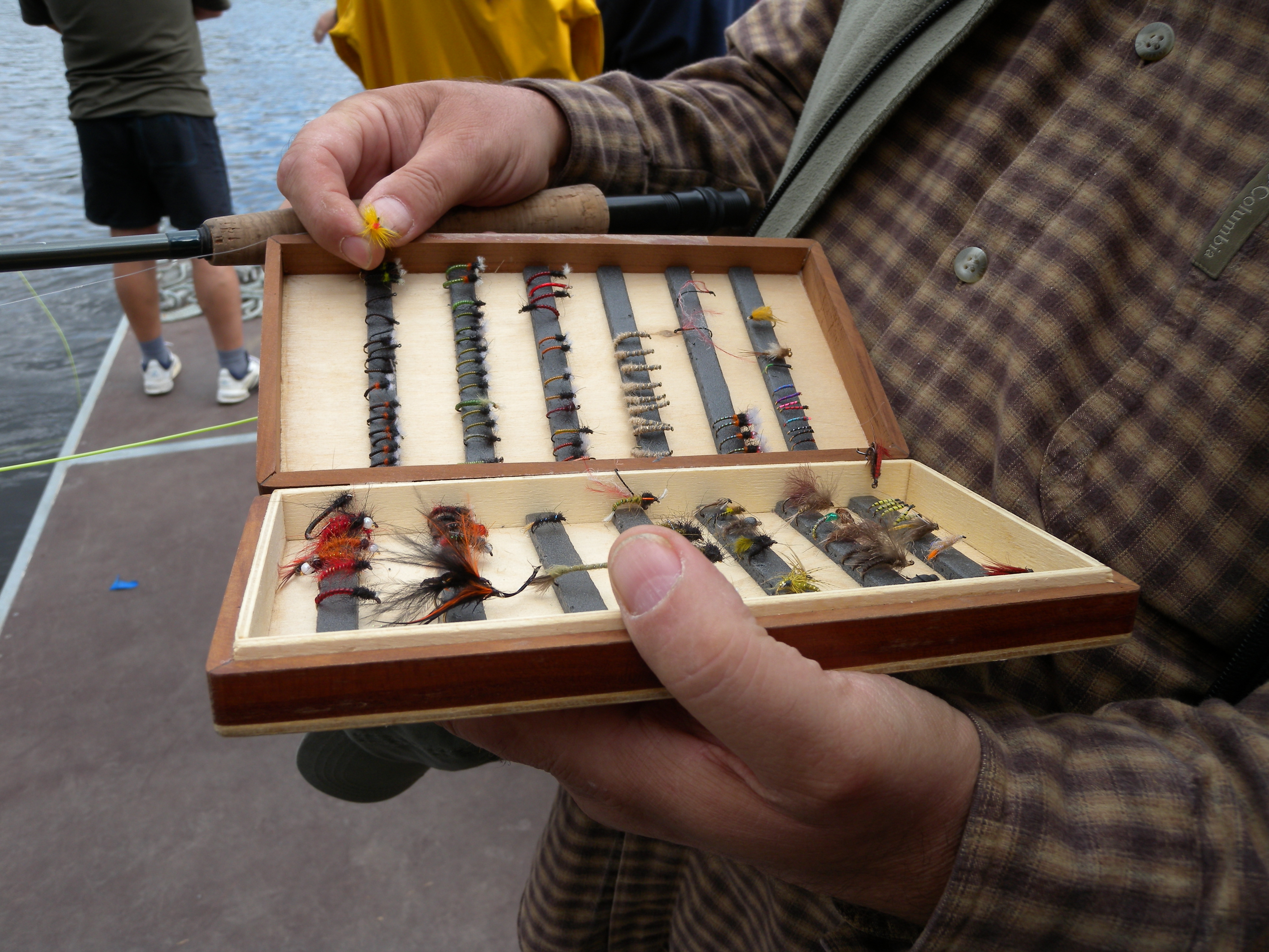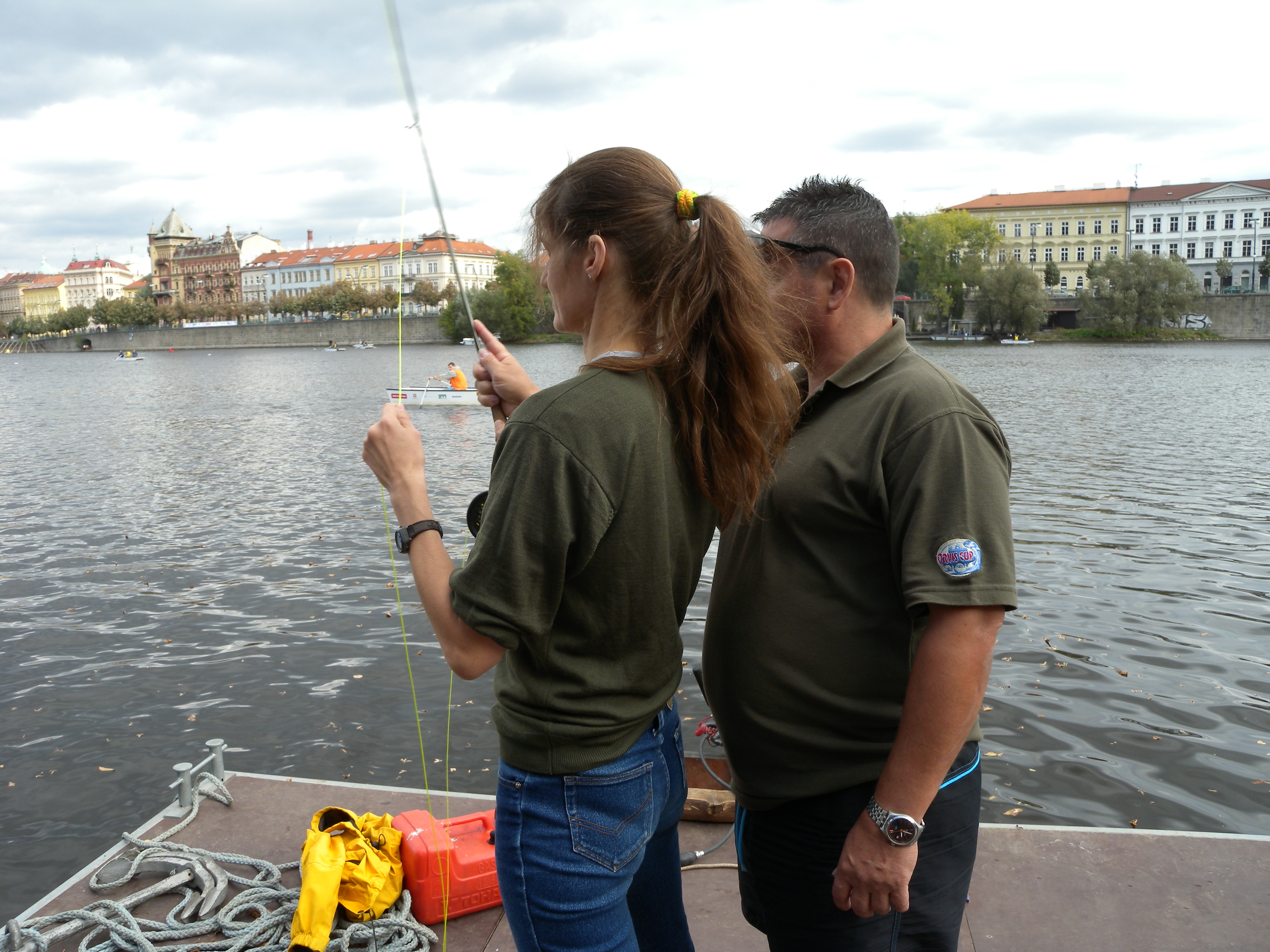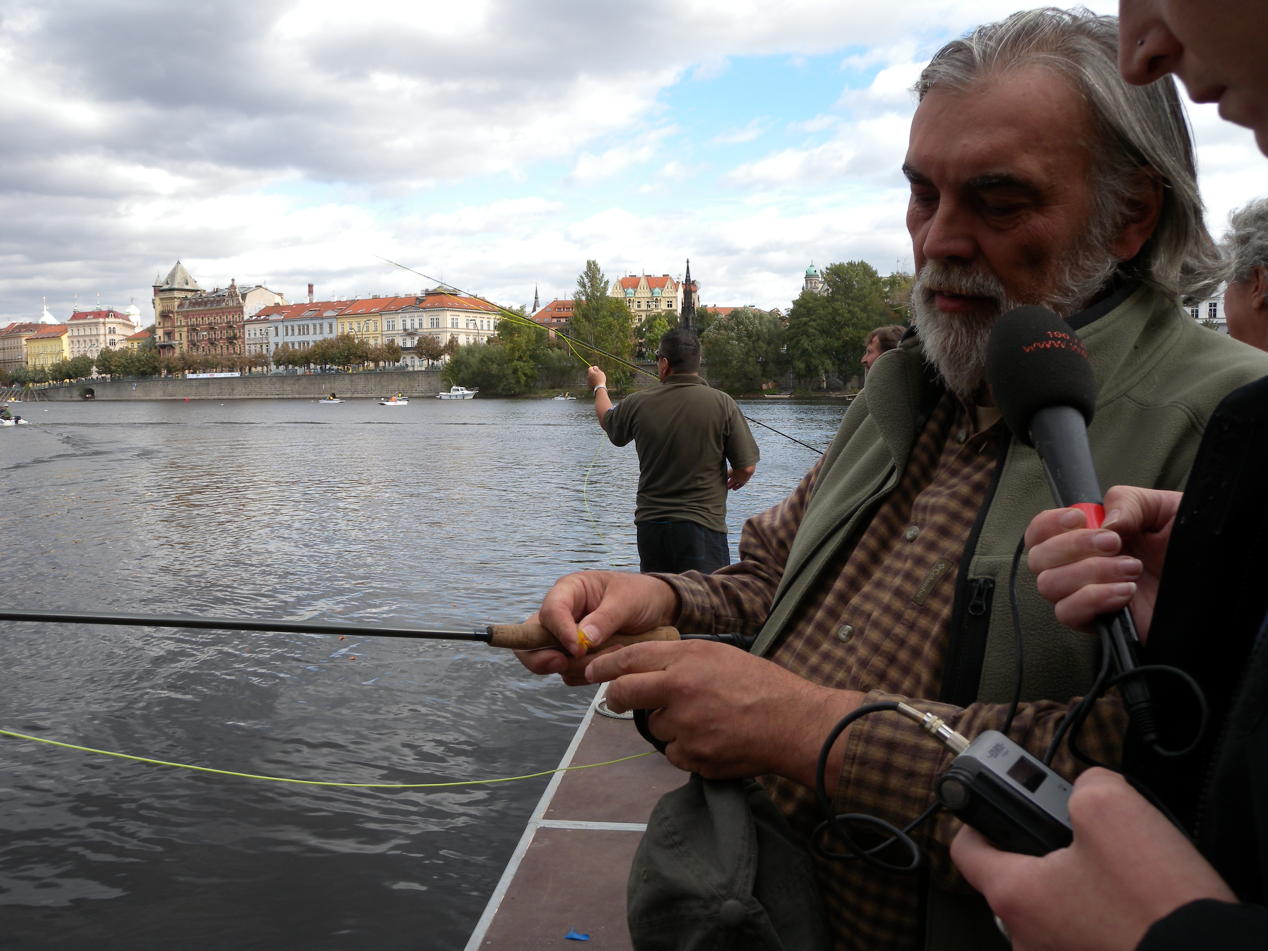 Pro závodníky a závodnice bylo do Vltavy vypuštěno celkem 25 metráků pstruhů. Tyhle šupináče se pak na své mušky snažilo nalákat více než sto muškařů. Ovšem dozvěděli jsme se, že muškařit se dá i bez ryb a dokonce i bez vody. V disciplíně zvané casting jde totiž o to, kdo dokáže nahodit nejdál a nebo kdo s největší přesností zasáhne předem daný cíl. Závodníci v této disciplíně se tak neschází u řeky, ale třeba na fotbalovém hřišti. Na Střeleckém ostrově jsme potkali mistra světa v této disciplíně Karla Světelského, který nám osvětlil něco z tajů správného muškařského nadhozu.