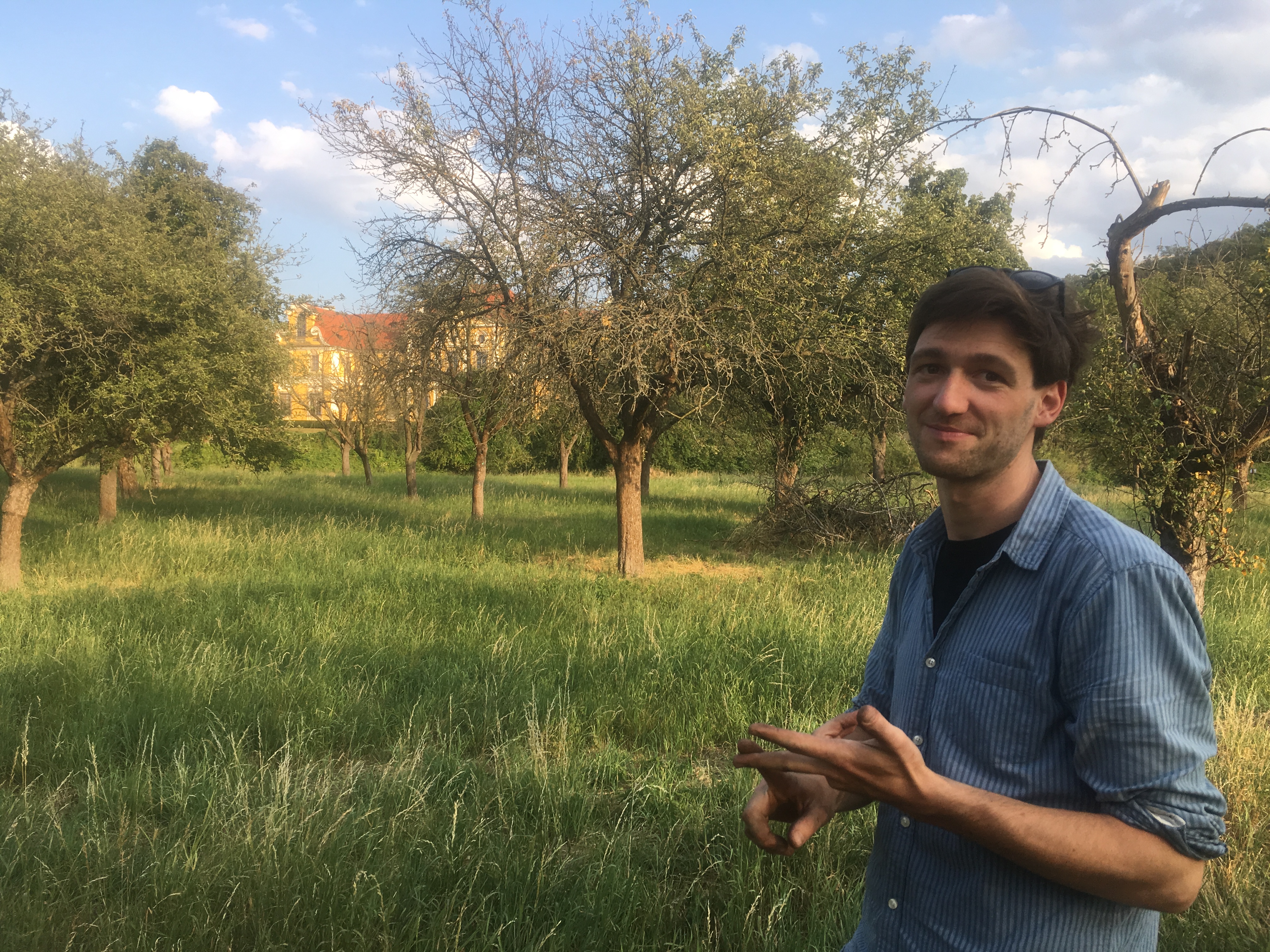 Staré sady ale neobnovují jen ochránci přírody, podstatné jsou také pro hospodářské využití. Absolvent fotografie na pražské FAMU Jáchym Kliment se před pár lety rozhodl vyrábět přírodní cider. „K výrobě cideru je potřeba mít dobrá jablka. Chtěli jsme mít vlastní zdroj jablek a pak se zjevil tento sad na Zbraslavi,“ vysvětluje mi základ svého podnikání. Aby byla možná pomalá fermentace bez konzervace a šlo vyrobit cider, který zraje roky, potřebuje Kliment staré odrůdy stromů. „Potřebujeme staré odrůdy a nejlépe z vysokokmenných stromů, které tahají do těch jablek úplně jiné živiny a úplně jinou strukturu chutí,“ popisuje, proč se mezi jinými rozhodl starat i o starý zbraslavský sad u tamního zámku.